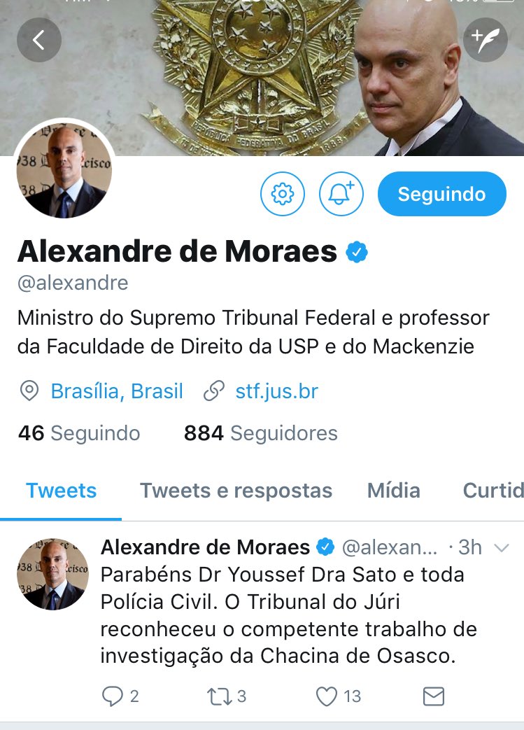 Jota On Twitter Ex Secretario De Seguranca De Sp Min Do Stf Alexandre De Moraes Estreia No Twitter Louvando Policia Pela Condenacao De Acusados De Chacina Https T Co Uridd6sboi