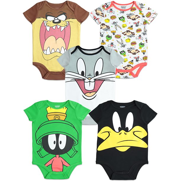 LOONEY TUNES Buggs Bunny Marvin the Martian Daffy Duck Tasmanian Devil Baby Boys 5 Pack Bodysuit. Kids Baby Teens Clothing Shoes LOONEY TUNES By default Price low to high Price high to low By customer reviews By discount SIZES. All looney tunes baby onesies ship within 48 hours and include a 30-day money-back guarantee.
